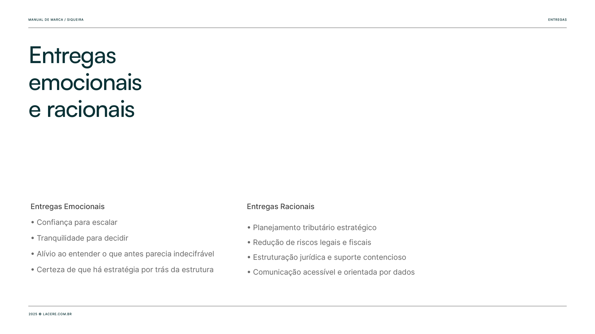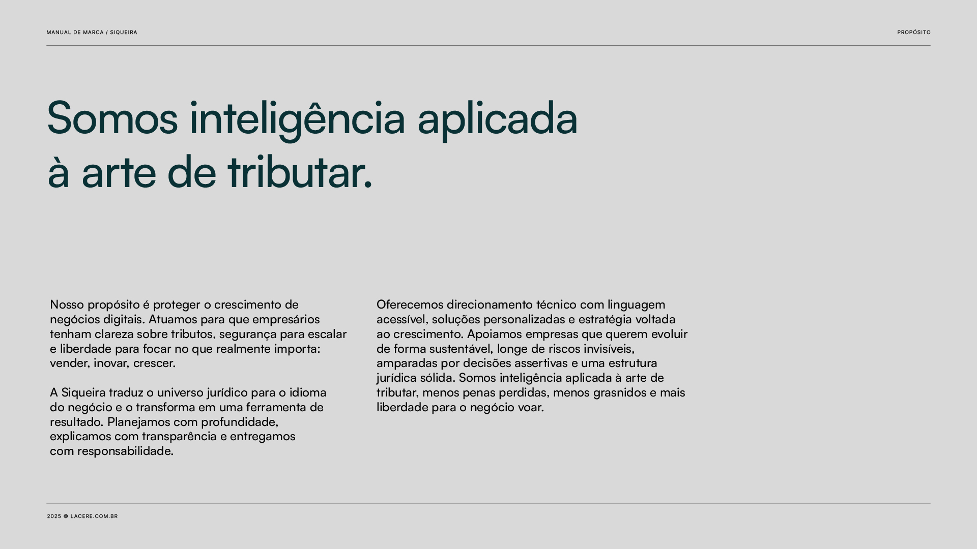 A marca ocupa um território pouco explorado, o da assessoria jurídica que fala a língua do negócio e transforma o jurídico em ativo estratégico. a identidade comunica com precisão o que está em jogo: o lucro, a operação e o crescimento sustentável.