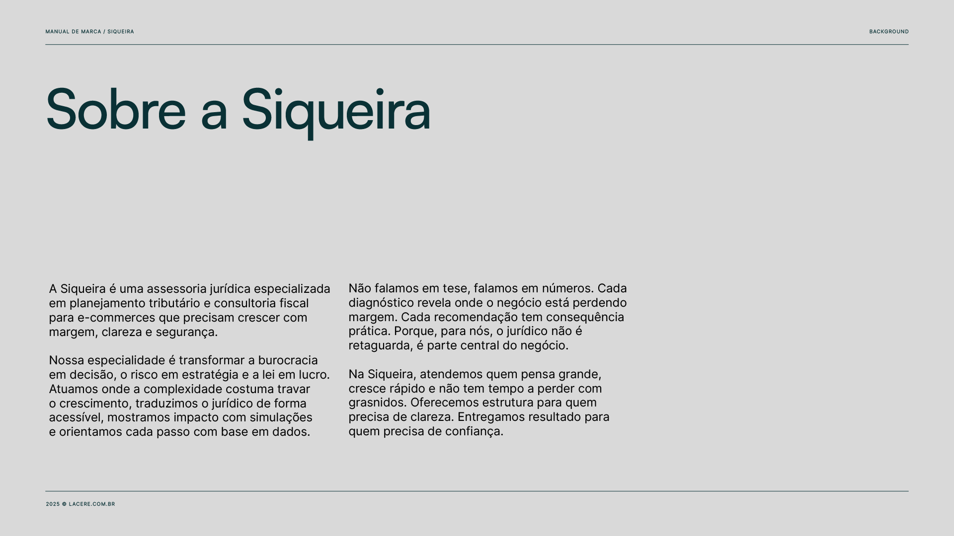 Todo o projeto foi desenvolvido para posicionar a Siqueira como protagonista no mercado de planejamento tributário para e-commerces. Uma marca que se destaca não apenas pela técnica, mas pela forma como transforma complexidade jurídica em clareza estratégica e margem de lucro real.